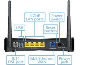 LED: Power, LAN 1 - 4, Ethernet WAN, DSL, Internet, USB 1/2, WLAN