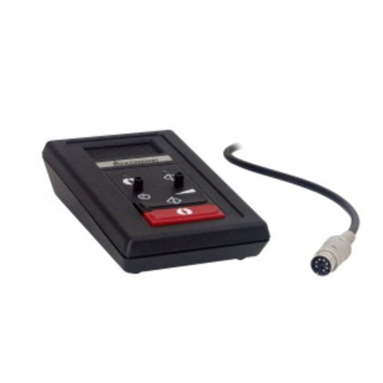 Schallwächter mit regelbarer Geräuschschwelle und Rufauslösezeit, Mikrofon, Ruftaste (rot) und Taste für Rufsperre zum Testen der Geräuschschwelle, 2 LED-Kontrollleuchten, 2 m Anschlussleitung mit 7-poligem DIN-Stecker.