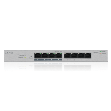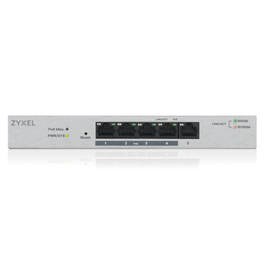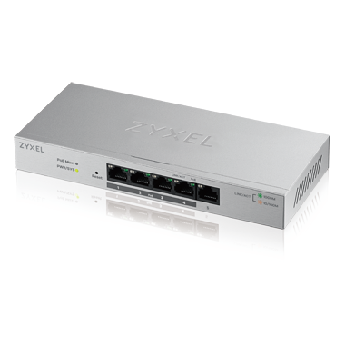 Die Switches GS1200-5HP und GS1200-8HP von ZyXEL verfügen über PoE-Fähigkeiten gemäß IEEE 802.3at (30 W pro Port mit einem PoE-Power-Budget von insgesamt 60 W). Damit versorgen sie PoE-fähige Netzwerkgeräte wie WLAN-APs, IP-Kameras und IP-Telefone mit Strom. Mit der bequemen Verwaltung über die Web-Oberfläche können Sie den Stromverbrauchsstatus jedes einzelnen Ports überwachen und/oder die Netzwerkgeräte neu starten.