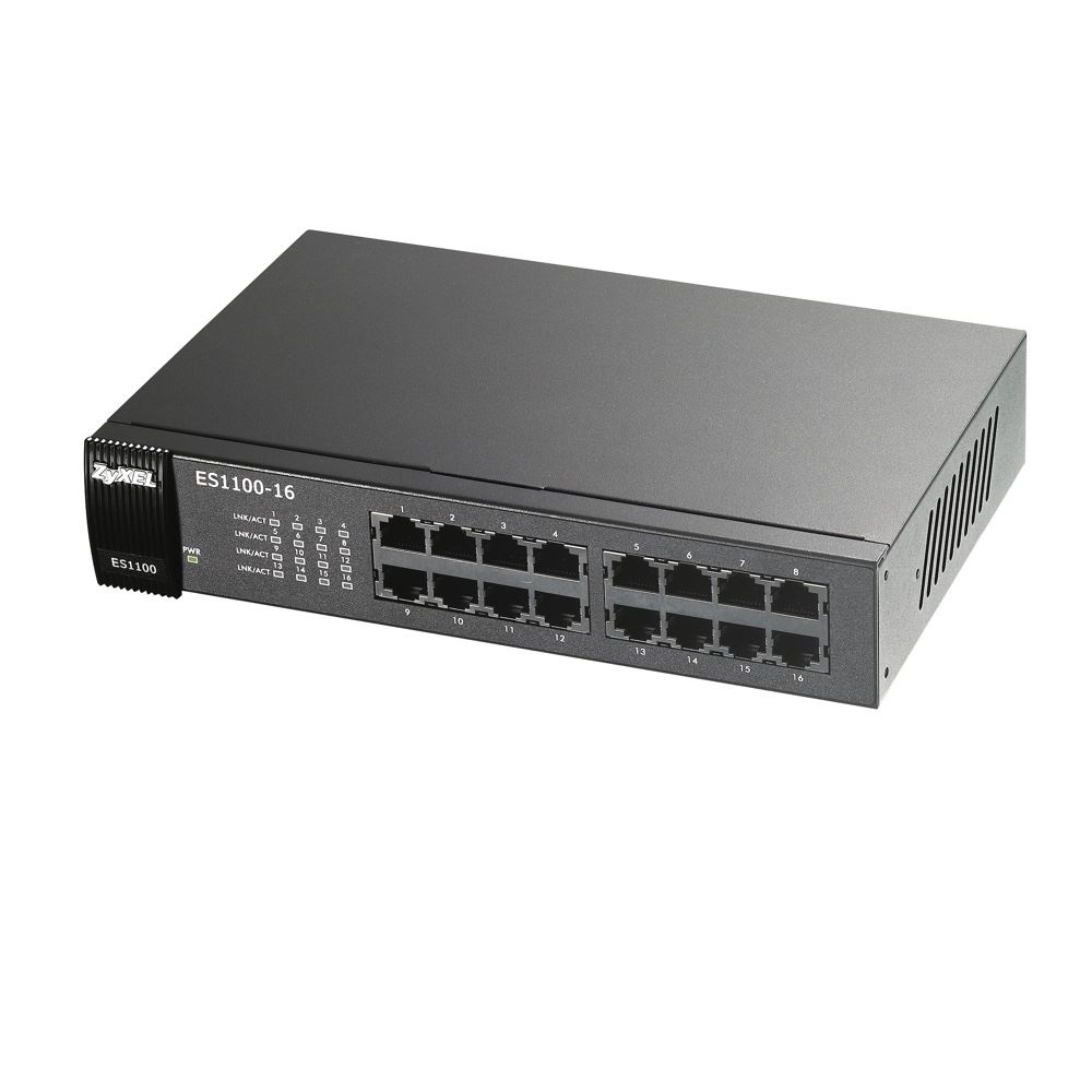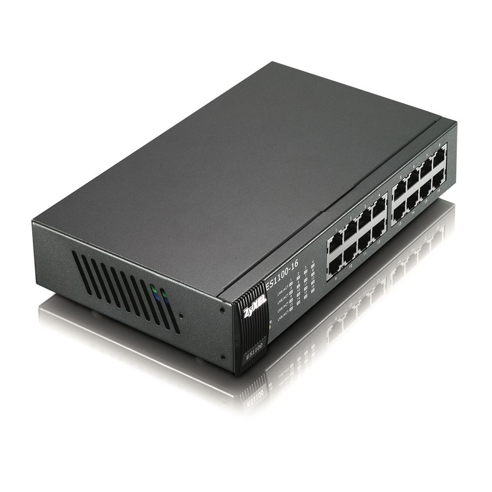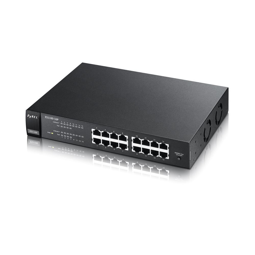 Die ES1100 Serie von Zyxel besteht aus vier Fast Ethernet Switches und zwei PoE-Switches (Power over Ethernet): ES1100-16, ES1100-24, ES1100-24E, ES1100-24G, ES1100-8P and ES1100-16P. Die Switches ES1100-8P/16P/16/24E im Tischgeräte-Design stellen die perfekte Lösung für kleine Büros und SOHO-Umgebungen dar, denn mit ihnen lässt sich zuverlässiger Netzwerkzugang erreichen. Die Switches ES1100-24/24G wurden für 19” Racks entwickelt und lassen sich leicht in Standard-Verteilerschränke einbauen.