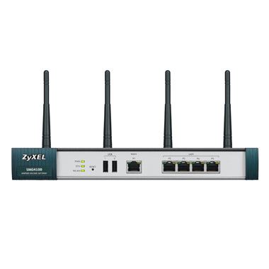 Das UAG4100 von ZyXEL ist ein Wireless Hotspot/Access Gateway der nächsten Generation, mit dem bessere Performance, Kapazität und Service-Qualität erreicht werden als mit vergleichbaren Lösungen. Durch das 802.11 a/b/g/n Dual-Radio-Design mit 2,4 GHz und 5 GHz werden zweimal das Spektrum und verdoppelte Bandbreiten erreicht, so dass sich eine erheblich größere Anzahl an Wireless-Geräten einbinden lässt. Seine hochperformante Hardware-Architektur kann in der Basislizenz 200 und durch Lizenz-Upgrade bis zu 300 gleichzeitige Benutzer unterstützen. Es bietet auch granuläres Bandbreitenmanagement, um die gemeinsame Nutzung gleicher Bandbreiten zu erzwingen, Missbrauch von Bandbreiten zu verhindern und die für die Erhöhung der Kundenbindung sowie die Gewinnung von Neukunden erforderliche Service-Qualität zu erreichen.